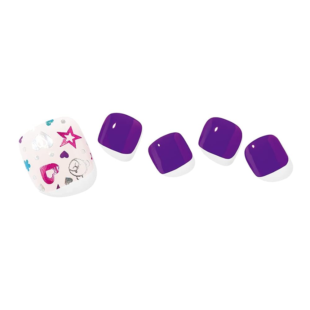 「商品情報」「主な仕様」にぎやかキュートなスパンコールペディクリアベースにクマやハート、星などの可愛いスパンコールをあしらったポイントネイルと、透明感と彩度の高いパープルの組み合わせ。楽しい雰囲気がわき上がり、軽やかな足元をつくります。
