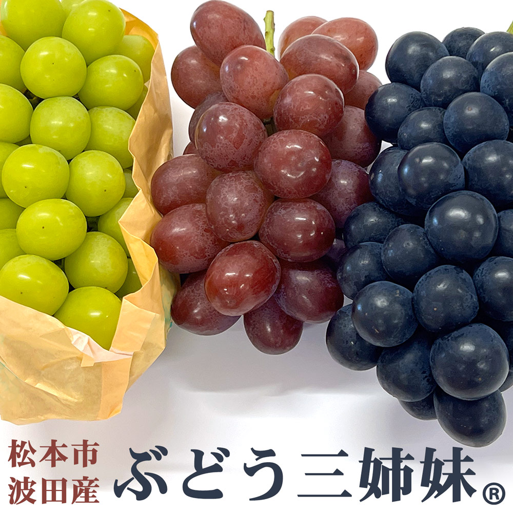 「ぶどう三姉妹」シャインマスカット・クイーンルージュ・ナガノパープル 松本市波田産 2025年は取り扱い無し