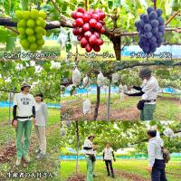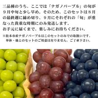 長野県松本市波田産、大月さんの育てた信州の高級「ぶどう三姉妹(R)」の「シャインマスカット」「クイーンルージュ」「ナガノパープル」のセットです。