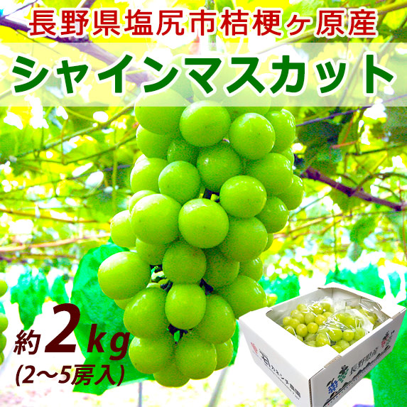 信州塩尻桔梗ヶ原産 シャインマスカット 2kg (2〜5房入り) 2025年分終了