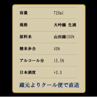 大吟醸生酒ならではの華やかにしてみずみずしさあふれる香気に柔らかくふくよかな味わいのあと、