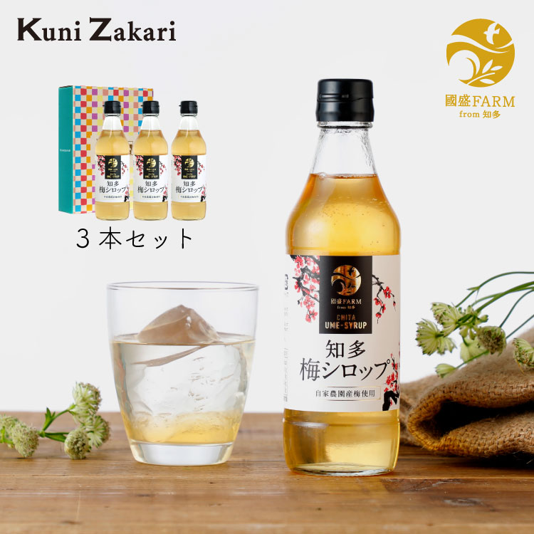 愛知県知多半島にある自家農園「國盛FARM」で栽培した梅のシロップの3本セットのギフトです。水や炭酸水で4倍に希釈してお飲みください。梅の酸味が効いたドリンクになります。かき氷のシロップとしても使用できます。冬はお湯割りもお勧めです。