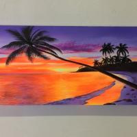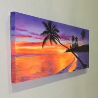 海の絵 ヤシの木 サンセットビーチ A W150×H50cm 絵画 (1179-1) 大きい 絵 波 アート壁掛け インテリア 風景画 バリ絵画 アートパネル 夕日