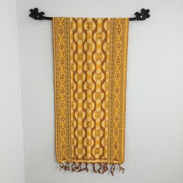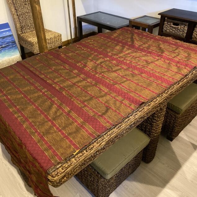 イカット テーブルクロス マルチカバー 103×190 茶×えんじ 金糸入り ストライプ 壁掛け バリ雑貨 アジアン雑貨 モダン インテリア リビング エスニック