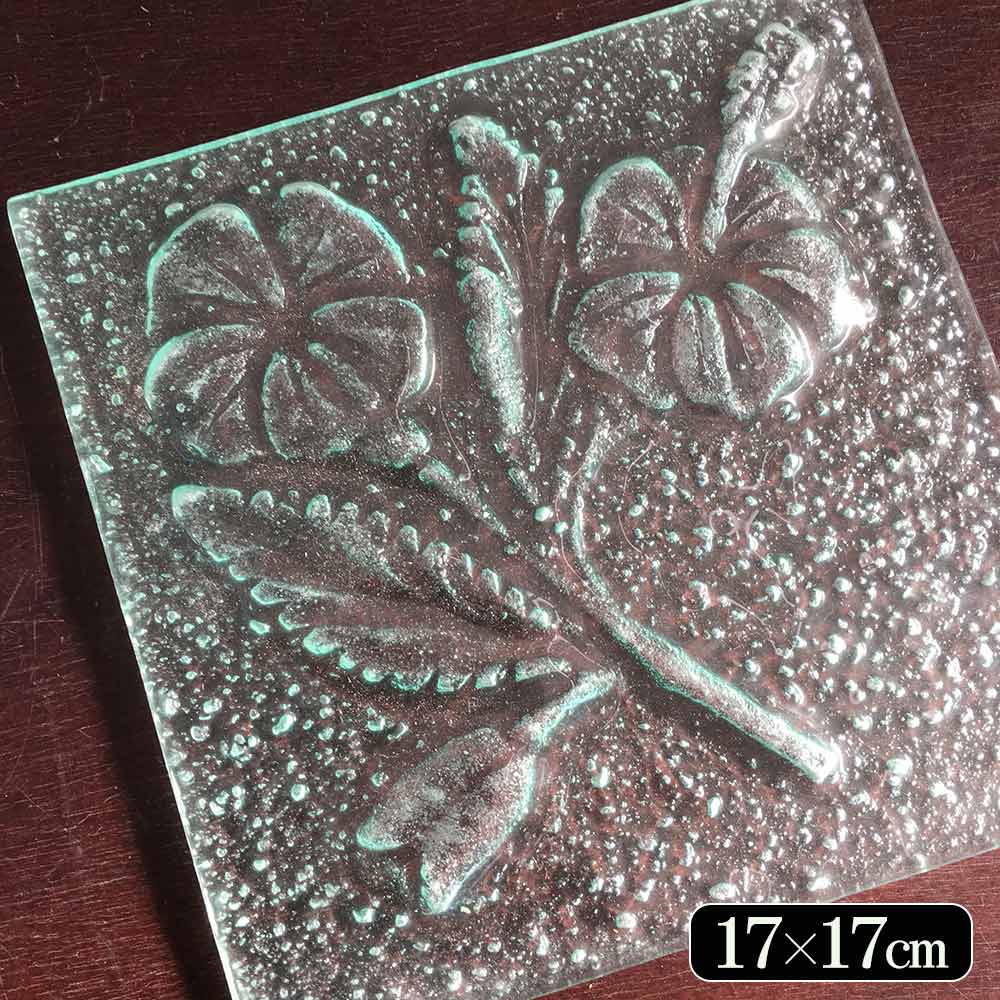 オリジナルガラス バリガラス 花 ハイビスカス B 17×17cm 角 資材 建具 DIY インテリア エクステリア バリ島製