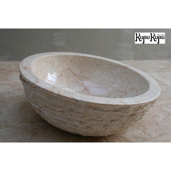 天然大理石 洗面ボウル クリーム 35cm 横ライン 置き型 カクダイ セット 金具付 バリ島 アジアン リフォーム 店舗内装
