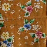 ろうけつ染めといってロウを溶かして綿又はレーヨンに絵を描いて染め上げるものです