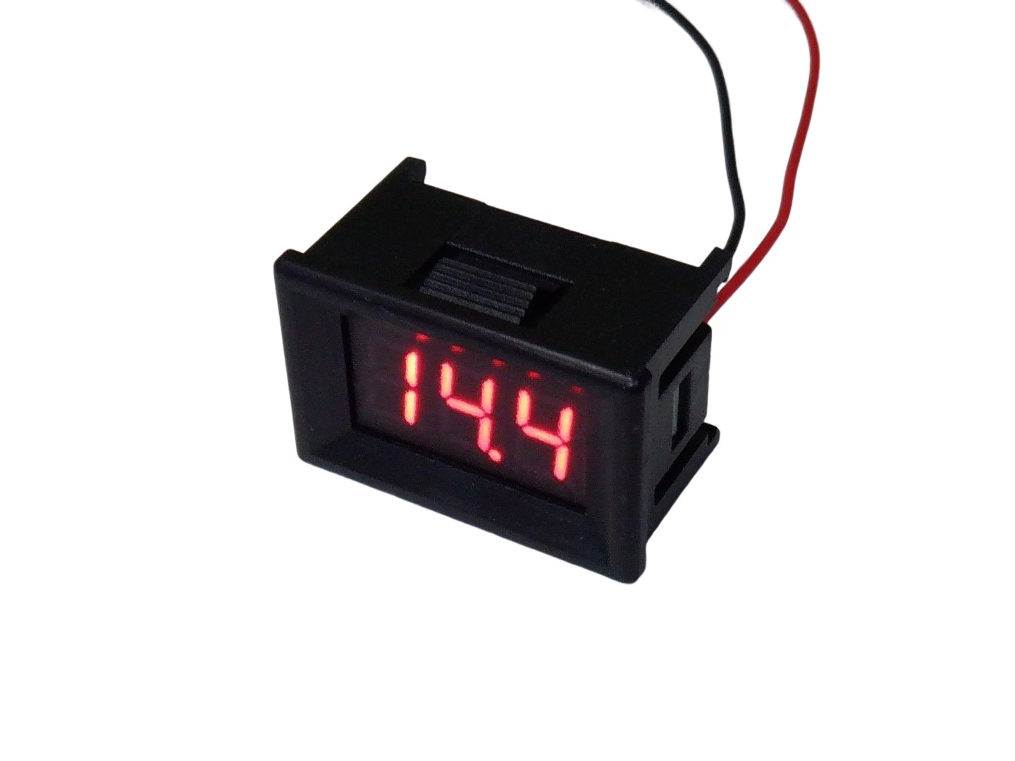 測定範囲はDC4V-DC30V。リード線の長さは19センチ。表示は 赤色になります。 表示部サイズ35mm(W)×23mm(H)×20mm(D)