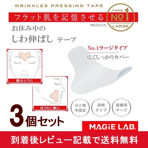 しわ シワ 伸ばし テープ ほうれい線 小じわ 対策 おでこ 額 眉間 顔 たるみ 改善 貼る 医療用 ラージタイプ 3個組(メール便・対象品のみ同梱可)