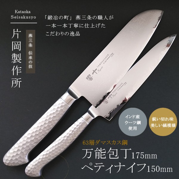 ダマスカス 包丁 鋼 ステンレス ペティ 150mm 三徳 万能 175mm 2点セット 日本製 プロ 仕様 高級 果物 肉 魚 野菜 切り ナイフ 柄 直送NKJ101