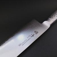 ダマスカス鋼はインド産のウーツ鋼を使用し、幾重にも重ね鍛造、独特の美しい縞模様と耐久性に優れ、錆びにくく、鋭い切れ味を実現しました。