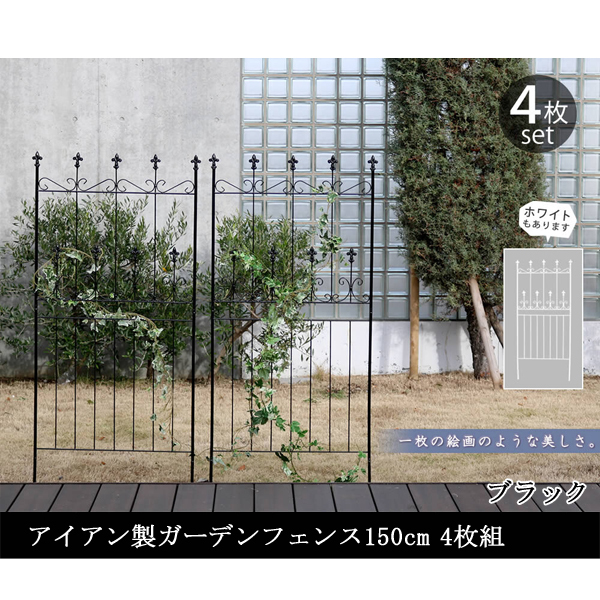 ガーデンフェンス 庭 フェンス 仕切り トレリス ガーデニング アイアン 目隠し diy おしゃれ 柵 埋め込み エクステリア 薔薇 つる 誘引 150 黒 4枚 直送SPSM