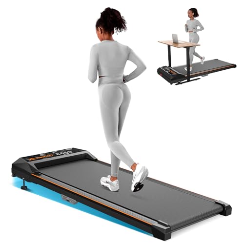 ・多用途ポータブル・トレッドミル - コンパクトなトレッドミルは、厚さがわずか12.7cmで、ソファや机、ベッドの下に簡単に収納できます。省スペース設計で、移動用のキャスターが付いているため、マシンを簡単に移動させたり持ち上げたりできます。重量はわずか約17.7kgですので、使用後は好きな場所に収納できます。