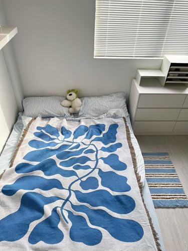 北欧 ボタニカル柄 ブルー インテリア ベッドカバー汚れ防止 洗える 四季通用 130X160cm