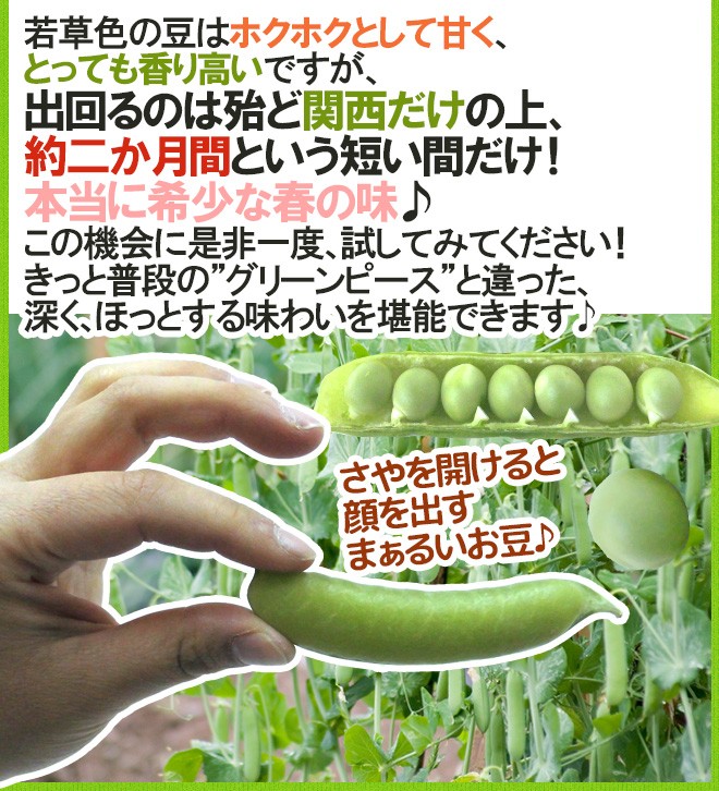 関西では春の味覚として外せない「うすいえんどう」見た目はグリーンピースと似ていますが、味わいは全くの別物!