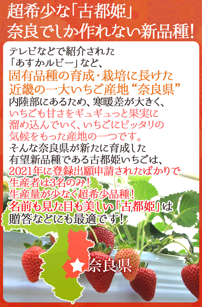 そんな奈良県が新たに育成した有望新品種である古都姫いちごは、2021年に登録出願申請されたばかりで生産者は3名のみ!