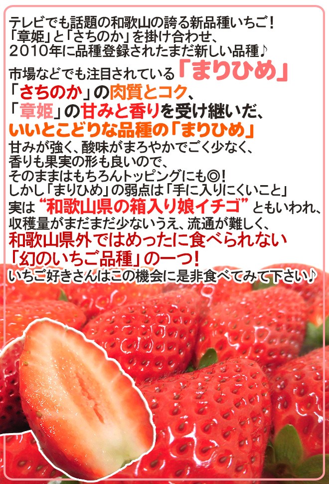 【送料無料】華やかな香りに、酸味の少ないまろやかな甘さとコク!美しい姿は贈答にも最適★和歌山県自慢のオリジナルブランドいちご「まりひめいちご」