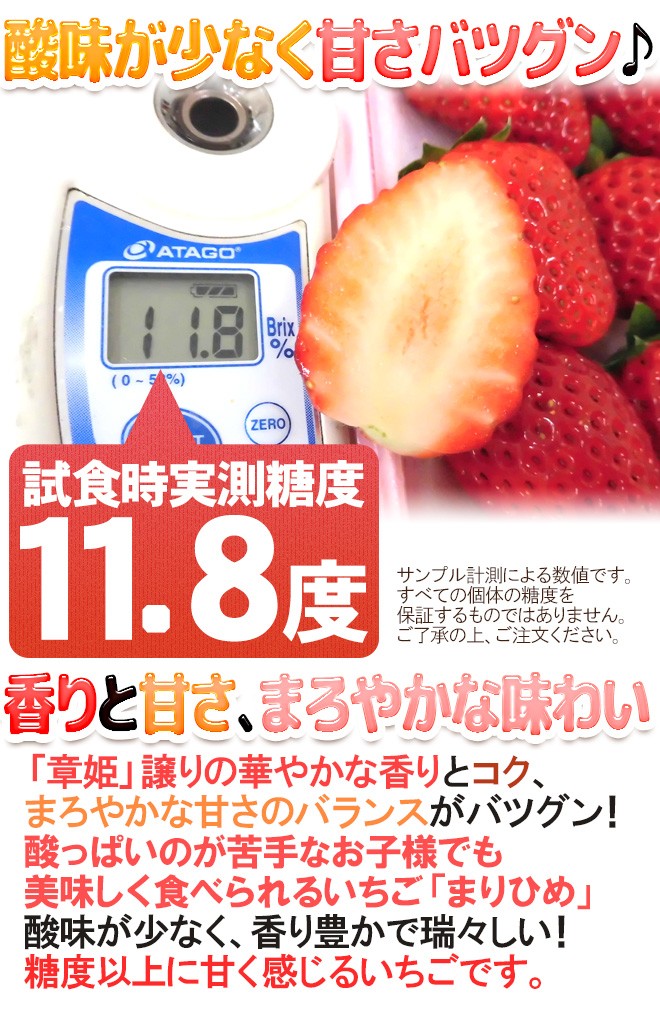 ■「章姫」×「さちのか」=まりひめ!まろやかな甘さと香りが魅力♪