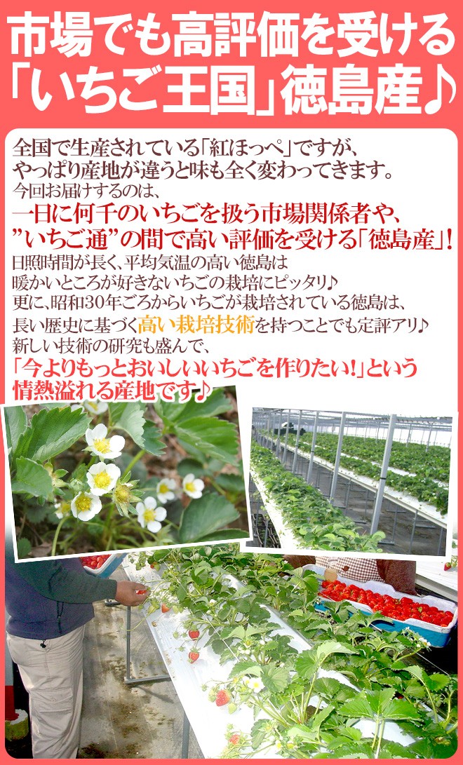 日照時間が長く、平均気温の高い徳島は暖かいところが好きないちごの栽培にピッタリ♪