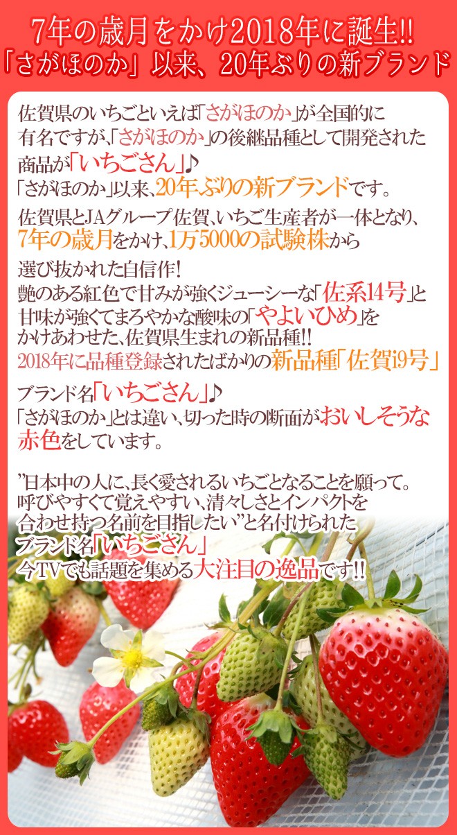 ■「さがほのか」の後継品種として開発された商品が「いちごさん」