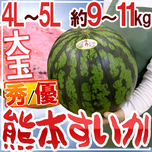 【送料無料】シャクシャクで甘〜い!お待たせしました大玉すいか♪爽やかな甘味としっかりとしたシャリ感のある果肉!いくらでも食べられちゃうおいしさです!母の日・父の日・お中元にも♪4月5月は熊本産すいか、6月7月は大栄西瓜、8月9月は山形産尾花沢すいか♪旬をリレーして夏すいかをお楽しみください♪/フルーツ/果物/11キロ/9キロ/爆買