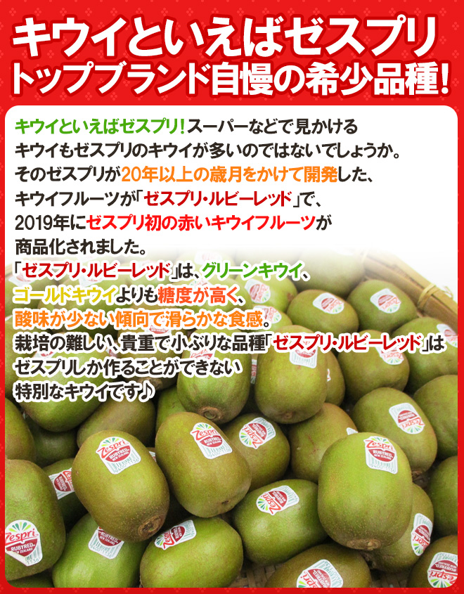 ゼスプリが20年以上の歳月をかけて開発した、栽培の難しい、貴重で小ぶりな品種「ゼスプリ・ルビーレッド」
