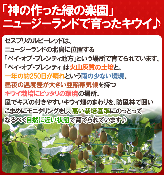 ゼスプリが20年以上の歳月をかけて開発した、栽培の難しい、貴重で小ぶりな品種「ゼスプリ・ルビーレッド」