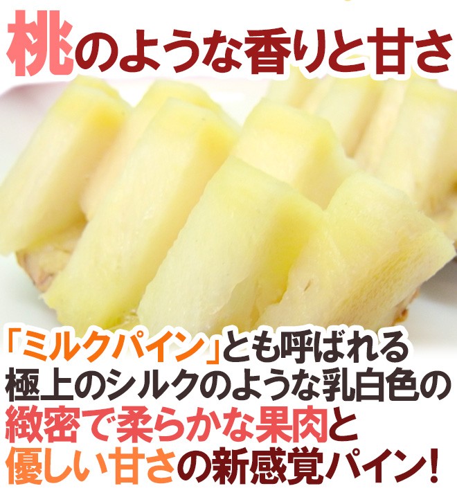 「ミルクパイン」とも呼ばれる極上のシルクのような乳白色の緻密で柔らかな果肉と優しい甘さの新感覚パイン!