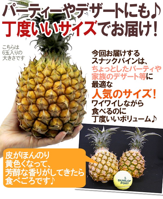 ■今回お届けするスナックパインは、ちょっとしたパーティや家族のデザート等に最適なほどよい大きさで人気のサイズ!