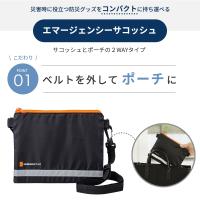 | セット内容 | ●エマージェンシーサコッシュBK ●静音アルミブランケット ●ウェットティッシュ(5年保存) ●水に流せるポケットティッシュ ●使い捨てカイロ ●使い捨てマスク ●携帯トイレ(1回分) ●非常用呼子笛(IDカード付) ●防災ガイドメモ ※在庫状況により一部商品を変更する場合がございます。予めご了承ください。 |