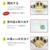 レスキューライス:水かお湯を注ぐだけでできる簡単調理の非常食です。長期保存が可能で持ち運びにも便利。味付き具材入りで栄養バランスもOK!