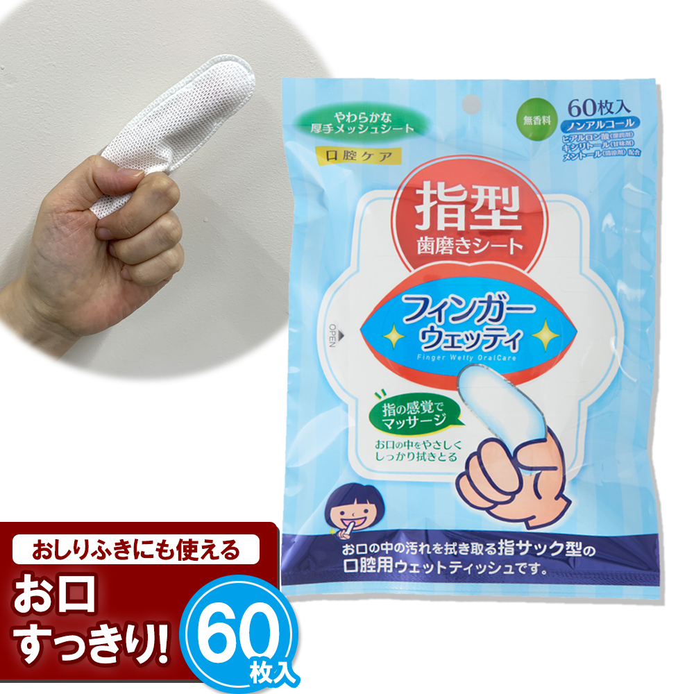 【指型歯磨きシート フィンガーウェッティー60枚入 日本製】