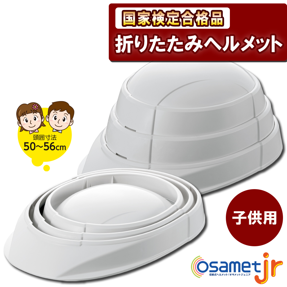 折りたたみヘルメット 【オサメットjr(ジュニア)】 ホワイト | A4サイズに収納できる 子供用 軽量 日本製 国家検定合格品 防災ヘルメット