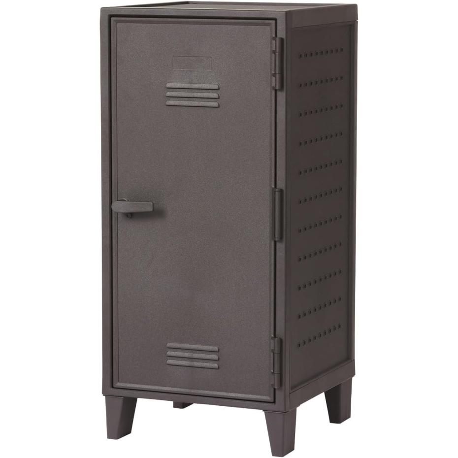 ●側面にペグボードが付いたプラスチック製のロッカー型収納ケース。