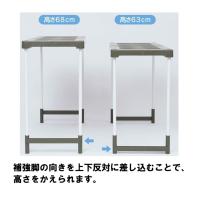 【高さ調節も2段階で調節可能です。 棚の高さは足の向きを変えることにより、63・68cmの2段階に調節できます。】