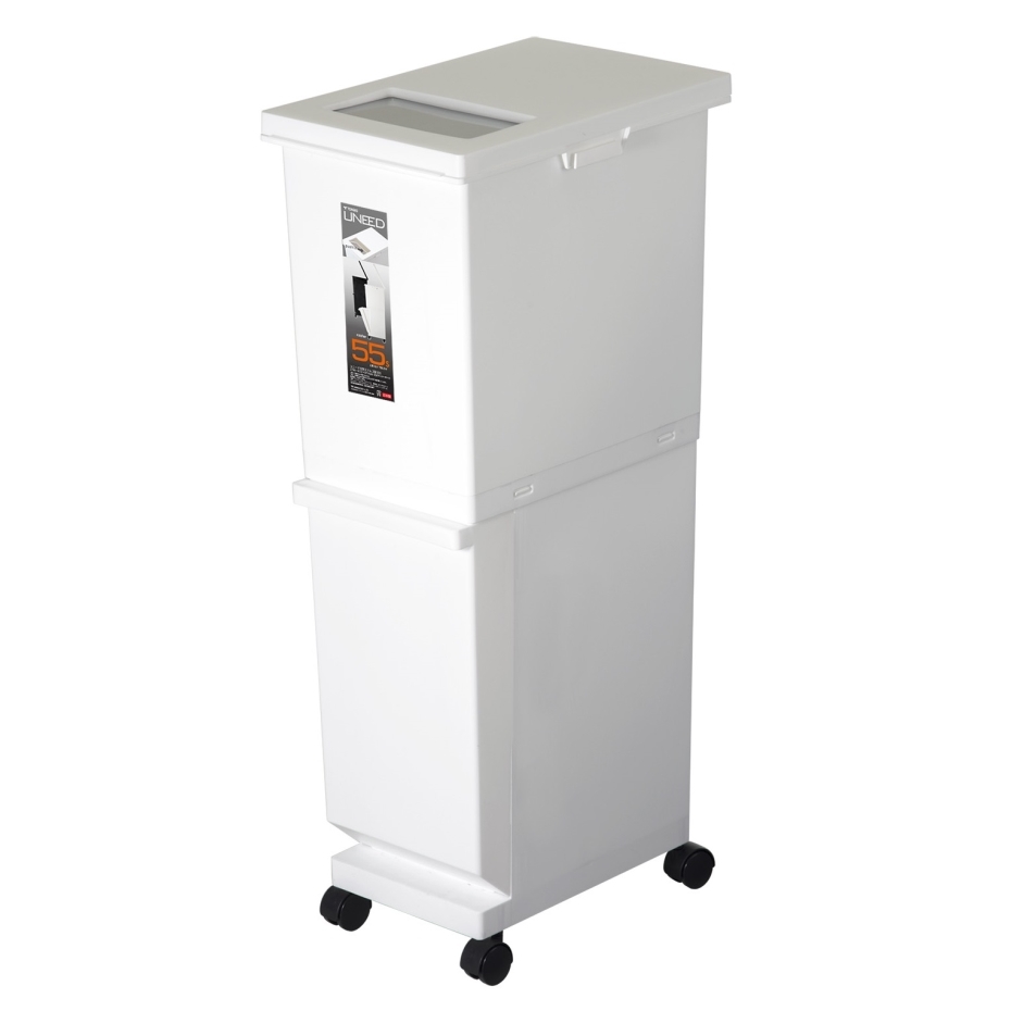 トンボ ユニード分別スリム 2段 55S ホワイト (幅27×奥行41×高さ87cm 上段32L 下段23L)