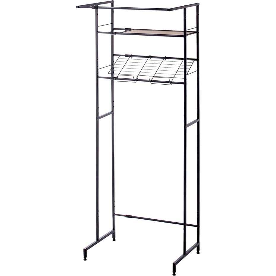 平安伸銅工業 伸縮可能洗濯機ラック バスケット台付き HSR-4BK マットブラック (幅64〜82×奥行53×高さ182cm)