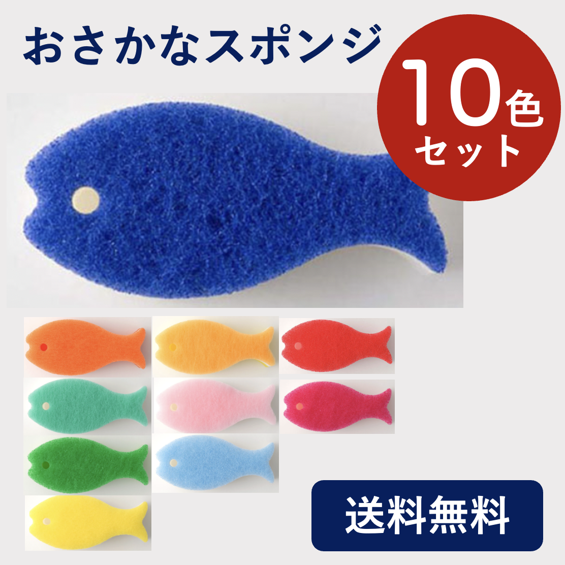★送料無料★マーナ おさかなスポンジ10色セット*【スポンジ】【食器用スポンジ】【台所スポンジ】【キッチンスポンジ】【ナイロンスポンジ】【福袋】 お魚スポンジ 食器用クリーナー おさかなスポンジ