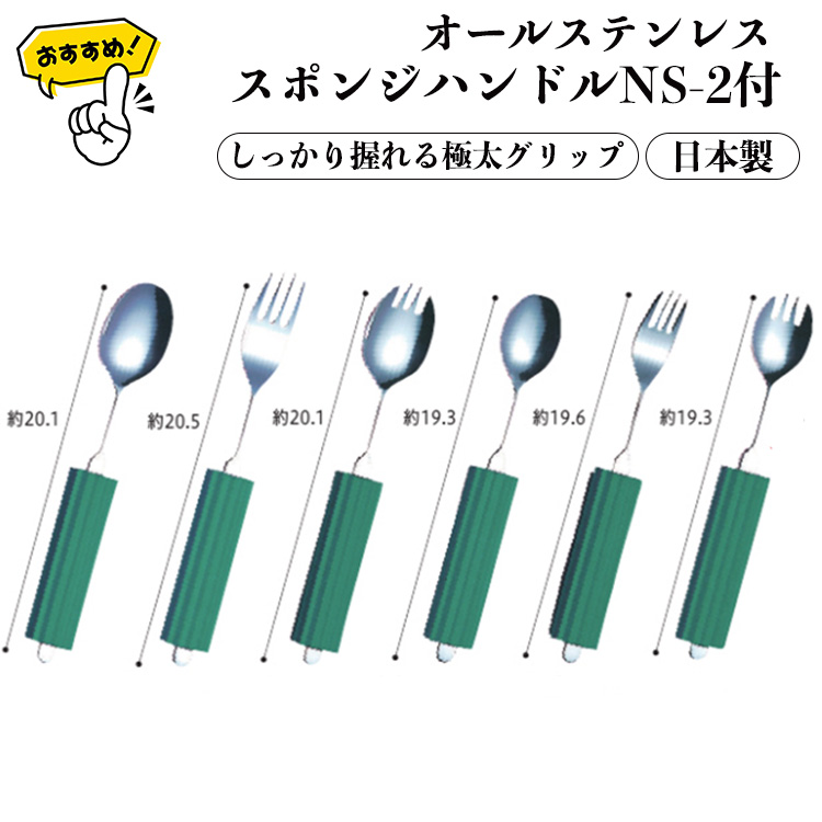 オールステンレスハンドル(スポンジNS-2付) スプーン フォーク 日本製 自助食器 リハビリ 食事用 自助具 持てない 握れない 子供 キッズ 握力弱い