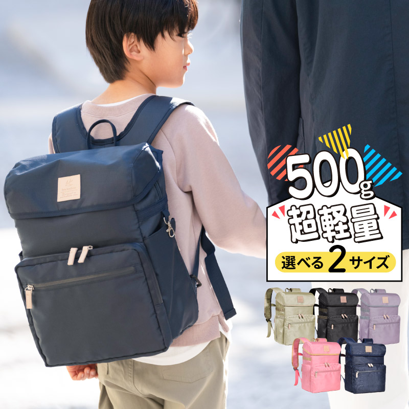 超軽量約500~gのランリュック。流行だけで終わらせない!長く使えるデザイン性の高い商品です。 開発チームより 細かいところまで配慮をした『子どものための』リュック。大人用を小さくした商品とは全く異なります!こだわりすぎて、説明文が長すぎて申し訳ないですが...(汗 絶対に良いものを作る信念で発売!気になる項目からでも是非一読よろしくお願いします! #01 超軽量約500~g!!最も軽いランリュック! 他に類を見ない軽さ! ※2023年2月楽天市場調べ、比較22社中の結果 #02 羽根のように軽い軽量フラップ マグネット構造の軽量フラップで、大きな間口をカバー。ふわっと上げて、手を離すだけでピタッと閉まる。軽くてソフトなフラップ感は、子ども達でも開閉が簡単!毎日の準備が楽しくなります! #03 タブレットもOKな中の構造 ガバッと開くメインコンパートメントで、出し入れスムーズ。開け口のファスナーは小さな手でも中の構造は3箇所に分かれる間仕切りあり!タブレット用の厚手のクッションや散乱防止のゴムバンド付き!美しいスクエアをキープするための底板は可動式。収納時には折り畳めてフラット収納ができます。机やフロアに置いても自立しますよ! #04 外ポケットは? フロントと両サイドに外ポケット。大きめフロントポケット内は3ヶ所に分かれています。一番大きな箇所はマチ付きなのでA5サイズの連絡帳など、毎日使うものがしっかり入ります。小物入れは飛び出し防止のマジックテープや鍵・スマートキーに便利な隠しフック(ナス管)など、カッギコ対策も万全!細かなデザインで子ども達の生活に配慮しています。大人も安心!両サイドポケットは、ファスナーをオープンにするとゴムギャザー付きの伸縮ポケットに早変わり。定規や縦笛など、スッと差し込んで収納する薄物から、水筒や縄跳びなど、かさばるものまで用途に合わせて使えます。便利の他に言葉が見つかりません! #05 クッション性 背面には厚さ15mm凹凸クッション×メッシュ素材を採用。合理的なデザインカットで衝撃を和らげながら、こもった空気を排出します。肩周りのショルダーベルトもふかふかです!たっぷりクッションで疲労性を軽減。暑がりで、わんぱくな子どもをサポートします。 #06 成長に合わせた伸縮調整機能 肩周りのショルダーベルトの長さ調節は標準機能。ボンボヌールのランリュックはワンタッチのチェストベルトつき。ボディーとリュックを一体化させることで、揺れや振動からくる疲労を軽減させます。上下に4段階調整、左右に22〜36cmでの調整ができるので、子どもの成長に合わせて調整が可能。大きくなって体力がつけば、チェストベルトが不要ですよね。もちろん取り外すこともできます。早くお兄さん、お姉さんの仲間入りになりたいちびっ子には目に見える目標です! #07 便利なフックと6年分の時間割とクラスカード 何かとぶら下げる物が多い小学生には必須のフックは4ヶ所。ショルダー両サイドに2ヶ所とサイド1ヶ所、フロントポケット内に隠しフック1ヶ所。ボンボヌール開発メンバーからプレゼントの思いを込めて、6年分のクラスカードと時間割カードを付属します。書き換えるたびに子どもの成長を願えるターニングポイントにしてください。 #08 お洗濯できます! 毎日使うものだから、お手入れは気になりますよね。汗・泥・汚れは成長の証!大人達は洗濯してサポートです!手洗い、もしくはネットに入れて洗濯機で弱設定。タンブラー乾燥を避けて、形を整えてから日陰干しをしてください。 Mサイズ新登場! 1. 厚さ&高さを各+3cmに拡張! ・収納力がアップし、より多くの荷物が入るように! 2. サイドポケットをシンプルな拡張型に変更! ・底面から浮いたデザインなので、出し入れしやすく、ボトルや小物の収納がラクに。 3. 6年間使えの名前カード付き! ・お子さまの成長に合わせて、長く使える便利なネームカードをプレゼント。 4. 安全対策として反射板を追加! ・暗い道でも安心。視認性を向上し、安全をサポート。 5. 取り外し可能な防水袋付き! ・完全防水なので水を入れても〜 6. 高学年向けのサイズとカラー展開! ・身長が高めのお子さまでも窮屈に感じることなく、快適に背負えるデザイン。 | |