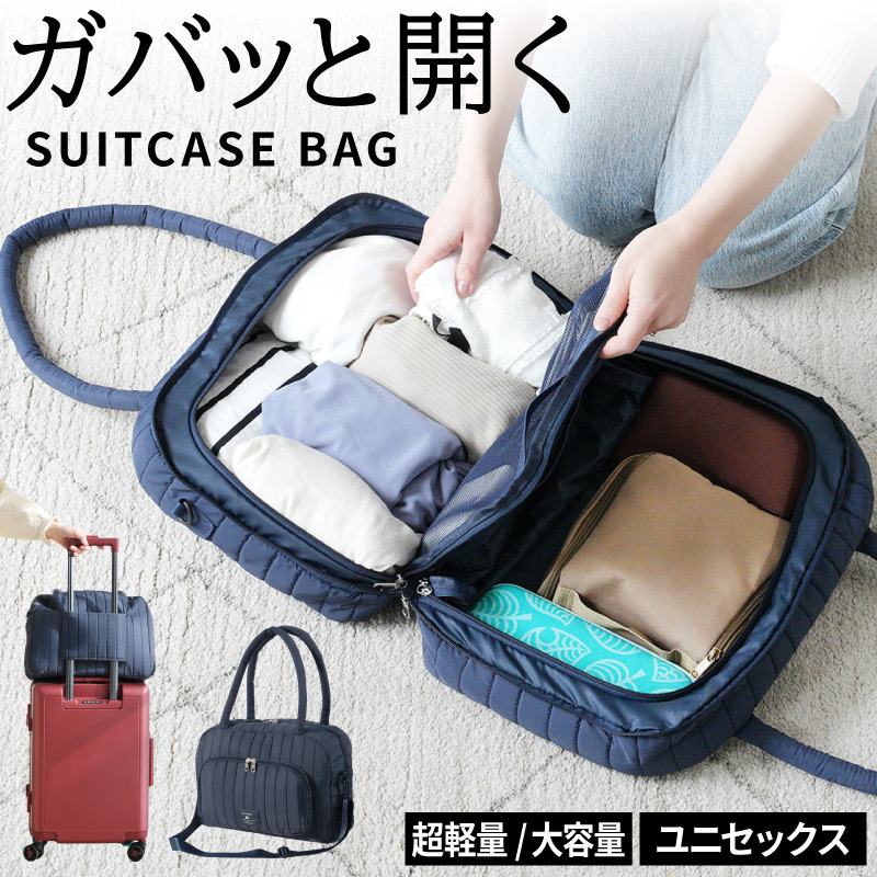 | スーツケースより身軽、ハンドバッグ以上の収納力。 “たちまち旅”をスマートにする、トラベルスーツバッグです。 ●本のようにパカっと開く設計で、中身が一目瞭然。探す・取り出すがスムーズ。 ●たっぷり入る2つの立体メイン収納。ファスナーで封ができ、衣類にシワがつきにくい構造。 ●小物ポケットをめくるとメイン収納が登場。整理したままアクセス可能。 ●両面メッシュポケットで小物が迷子にならない。裏返しても使える仕様。 ●PCやタブレットはセンターに“サンド”収納。衣類がクッション代わりになり安心。 ●前面にはダブルファスナーの大きな2口ポケット。電車内や移動中でもサッと取り出せます。 ●柔らかく馴染みの良いナイロン生地。つい入れすぎてもファスナーが閉まりやすい。 【持ち運びも快適】 ふわっとしたウレタン入り持ち手で、肩への負担を軽減。 ショルダーベルト付きで両手フリーもOK。 【キャリーオン対応】 背面スリーブ付きでスーツケースに固定可能。 移動の多い旅行や出張の強い味方です。 | |