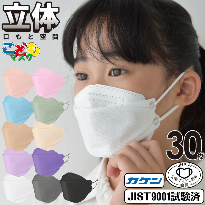 【マスク工業会正会員 日本カケン認証 JIS規格】30枚 子供マスク 3D 立体 4層 血色マスク kf94同型 不織布 韓国マスク 花粉 PM2.5 子供用マスク 快適 血色カラー