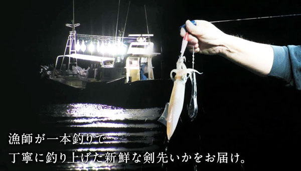 | コメント | 一本釣りした呼子産の剣先イカの姿造りを、魚本来の「旨味・香り・みずみずしさ」を保てる最新のCAS凍結で瞬間凍結しご家庭にお届けします。胴体には甘みがあり、エンペラはコリコリ食感、軟骨にはイカ味噌たっぷり、足はコリコリの甘みと、目と口以外は全部丸ごと食べられます。お刺身のあとは天ぷらにしたり、炙り焼きやバター焼き、煮付もおすすめです。 |
