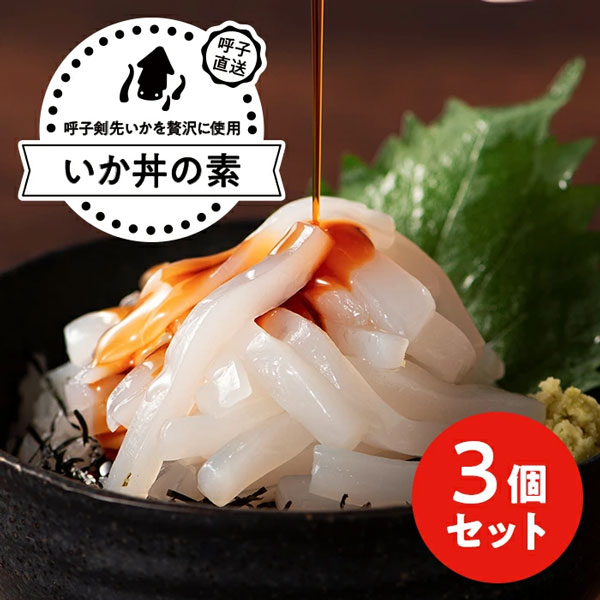 ■内容量: 名称:いか丼の素 3個セット | 1個約85g(内容量:いか70g・たれ15g)|原材料名:【いか】剣先イカ(玄界灘)(一部にイカを含む) 【添付たれ】醤油(国内製造)、砂糖、米発酵調味料、昆布エキス、かつおエキス、食塩、かきエキス、魚醤/調味料(アミノ酸等)(一部に小麦・さば・大豆を含む)|保存方法:要冷凍(-18℃以下で保存)凍結前加熱の有無:加熱してありません。加熱調理の必要性:加熱調理の必要はありません|※解凍後はお早めに、お召し上がりください。|販売者:JF佐賀玄海漁業協同組合 呼子CASセンター 佐賀県唐津市呼子町呼子740番地12