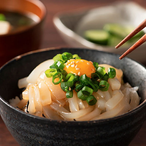 | コメント | 呼子名産の剣先イカを、本来の「旨味・香り・みずみずしさ」を保てる最新のCAS凍結で瞬間凍結したいか丼の素です。噛むたびに甘みが出て、コリコリとした食感が味わえます。いかとご飯に合う甘みの効いた特製たれ付き。袋のまま流水解凍したいかをご飯にのせ、特製たれをかけてお召し上がりください。お好みで大葉や卵、海苔をトッピングするとより美味しくお召し上がりいただけます。 |