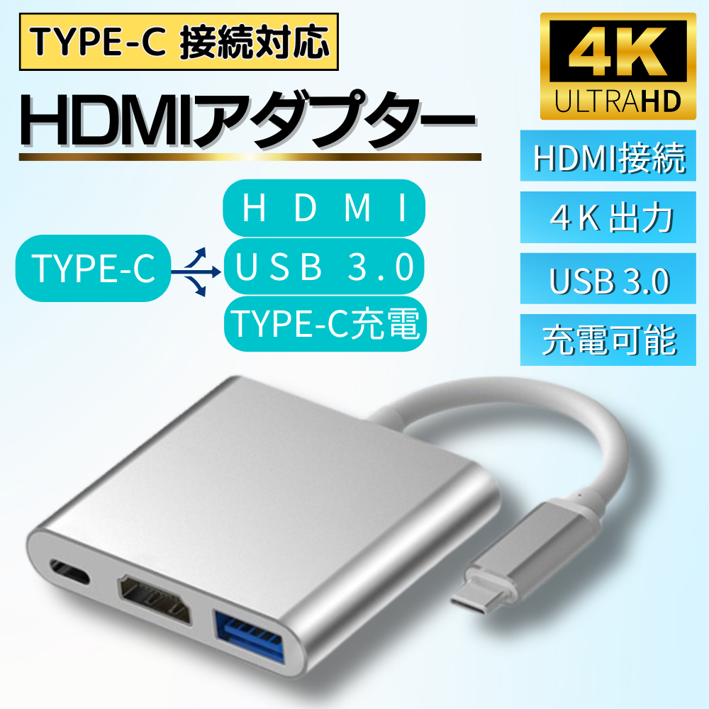 Type-C HDMI 変換ケーブル hdmi タイプc 変換 変換アダプタ 変換アダプター USB-C 4K Mac Windows アンドロイド 3in1