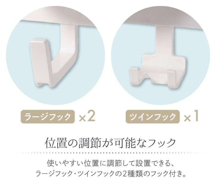 ●フックは使いやすい位置に調節可能なので、