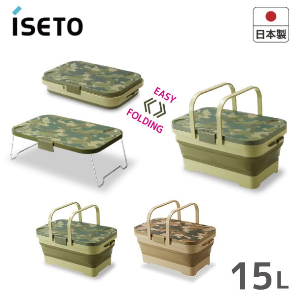 食器洗い たらい 洗面器 ランドリー 水遊び 車 収納 ペット おふろ かご ハンドル付き 折りたたみ式 水抜き栓 壁掛け ドリンクホルダー テーブル アウトドア BBQ バーベキュー ピクニック お花見 伊勢藤 日本製 アウトドア キャンプ ピクニック 取っ手付き テーブル 運動会 迷彩柄 緑 グリーン ブラウン 茶色 expoint01
