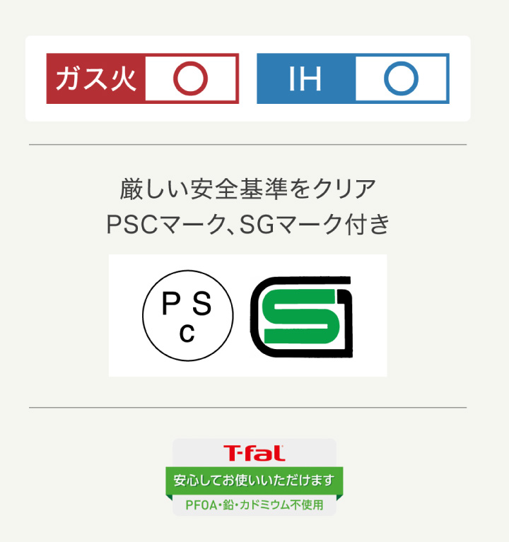 ティファール独自の安全設計により、初めて圧力鍋を使う方でも安心してお使いいただけます。