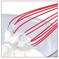 泡立ての部分のワイヤーをシリコーン素材でカバー。ボウルや鍋を傷つけにくく、使用中の音も静か。